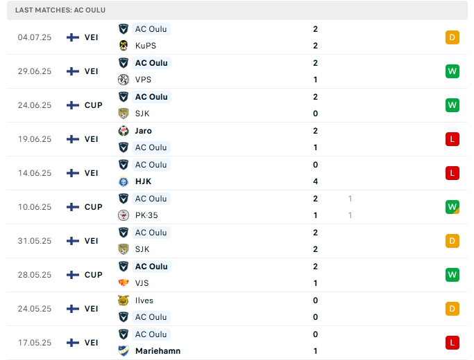 - Phong độ AC Oulu