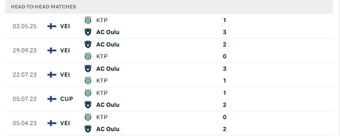 Lịch sử đối đầu của AC Oulu vs KTP Kotka