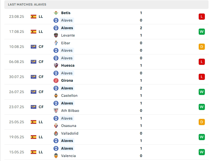 Alaves ở ngày ra quân họ có được chiến thắng 2-1 trước Levante, dù vậy ở vòng sau đó họ không thể tạo bất ngờ trước Betis, 3 điểm có được, đang xếp vị trí thứ 9 trên BXH, phong độ thời gian qua của Alaves là không tốt khi họ chỉ thắng 1, thua 3 và hòa 1 ở 5 trận gần nhất, dù vậy trên sân nhà của mình Alaves chơi khá tốt khi thắng 3 ở 5 trận vừa qua.