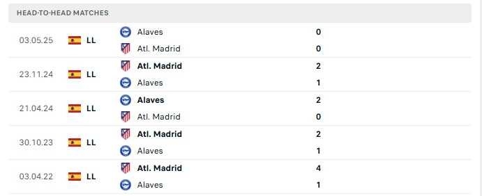 Lịch sử đối đầu của Alaves vs Atletico Madrid