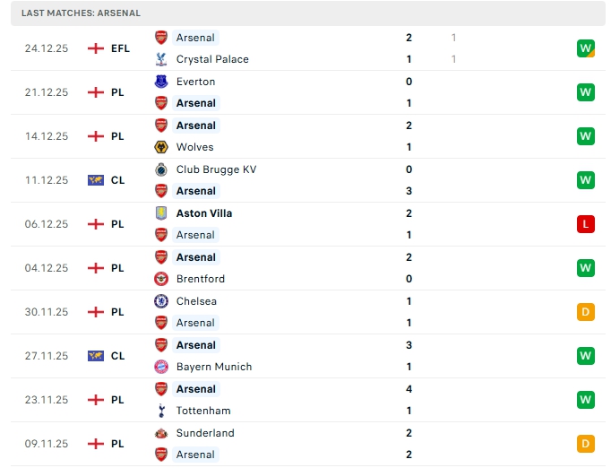 - Phong độ Arsenal