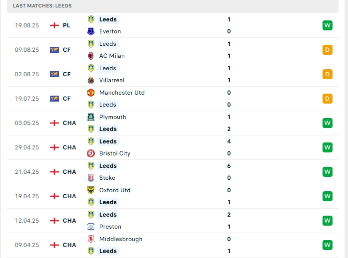Leeds Utd ở vòng mở màn họ có được chiến thắng ấn tượng 1-0 trước Everton, Leeds có màn chuẩn bị ấn tượng khi có được 3 trận đấu giao hữu, dù thành tích mang về không tốt với 3 trận hòa nhưng chiến thắng này khai màn sau khi trở lại sân chơi cao nhất nước Anh đang giúp Leeds nhiều sự tự tin.