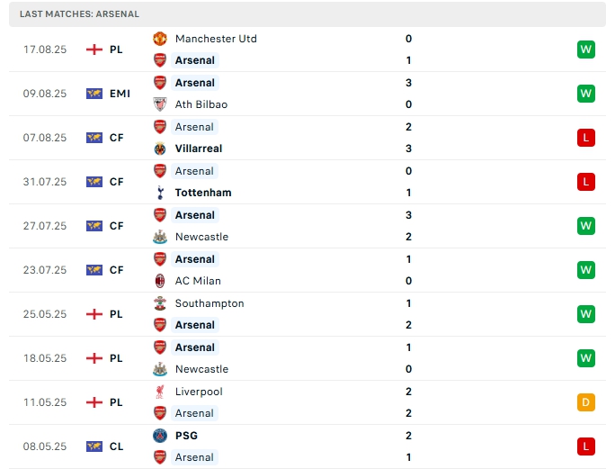 Arsenal để chuẩn bị cho mùa giải mới họ mang về 5 trận giao hữu, trong đó hàng công mang về 9 bàn thắng cùng hàng thủ nhận 6 bàn thua, 3/5 trận đấu đó khép lại từ 3 bàn trở lên, ở ngày ra quân Arsenal có được chiến thắng 1-0 trước Man Utd, hàng công của Arsenal đang chơi tốt và họ sẻ tiếp tục có cơ hội ghi bàn vào lưới của tân binh Leeds Utd sắp tới, 3/5 trận trên sân nhà vừa qua của Arsenal khép lại từ 3 bàn trở lên.