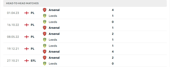 Những màn đụng độ giữa Arsenal và Leeds Utd thường diễn ra hấp dẫn với nhiều bàn thắng được tạo ra, 3/5 lần gặp nhau gần nhất của hai đội và 3/5 lần đón tiếp Leeds Utd trên sân của Arsenal khép lại từ 3 bàn trở lên.