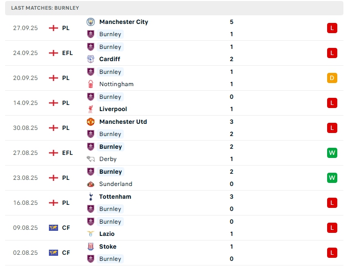 - Phong độ Burnley