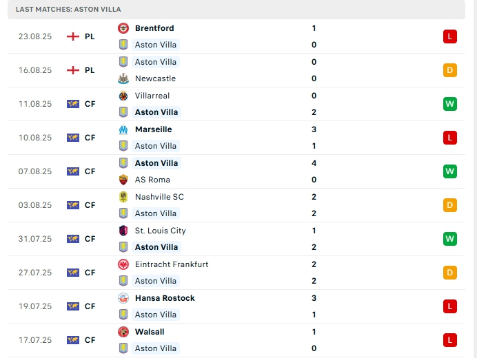 Aston Villa ở trận ra quân họ có trận hòa trước Newcastle, ở trận sau đó họ tiếp tục gây thất vọng khi để thua 0-1 trước Brentford, chỉ có 1 điểm sau 2 lượt trận và đang tạm xếp vị trí 17 trên BXH, phong độ thời gian qua của Aston Villa là không tốt khi họ chỉ thắng 1 ở 4 trận gần nhất, dù vậy trên sân nhà Villa Park thì Aston Villa đang cho thấy sự ổn định của mình với chuỗi bất bại kéo dài, họ chưa thua kể từ 28/11/2024.