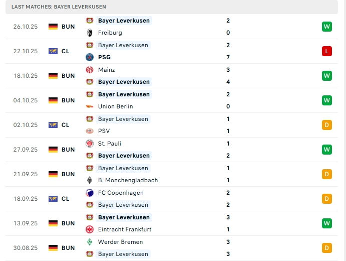 Bayer Leverkusen sau 8 vòng đấu họ mang về 18 bàn thắng cùng hàng thủ nhận 11 bàn thua, lối chơi của Bayer Leverkusen cũng đang cực kỳ cởi mở, 2/3 trận gần nhất của Bayer Leverkusen khép lại trên 3 bàn thắng, trong đó khi xa nhà ở cả trận vừa qua đều vượt mốc trên 3 bàn.