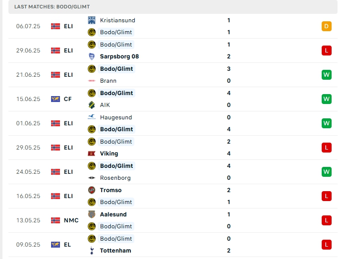 Bodo Glimt sau 11 vòng đấu hàng công của đội bóng này mang về 25 bàn thắng cùng hàng thủ nhận 11 bàn thua, lối đá của đội bóng này thiên về tấn công nên những trận đấu có sự góp mặt của Bodo Glimt đều hứa hẹn nhiều bàn thắng, ở 4/5 trận gần nhất của Bodo Glimt khép lại từ 3 bàn thắng trở lên và cả 5 trận trên sân nhà cũng vượt mốc trên 3 bàn.