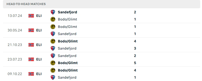 Những màn đụng độ giữa Bodo Glimt và Sandefjord thường diễn ra hấp dẫn với nhiều bàn thắng được tạo ra, cụ thể ở 4/5 lần gặp nhau gần nhất và 3/5 trận đón tiếp Sandefjord trên sân của Bodo Glimt khép lại vượt mốc 3 bàn.