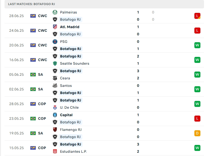 Botafogo sau 11 trận đấu họ mang về 14 bàn thắng cùng với hàng thủ cực kỳ chắc chắn khi chỉ nhận 7 bàn thua, lối chơi của Botafogo thiên về phòng ngự nên hiệu suất ghi bàn của hàng công là không tốt, 3/5 trận gần nhất của họ khép lại 90 phút không quá 2 bàn và cả 5 trận xa nhà vừa qua cũng khép lại với kết quả tương tự.