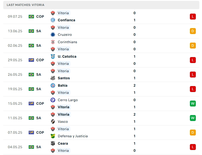 Vitoria sau 12 trận đấu họ mang về 10 bàn thắng cùng với hàng thủ nhận 14 bàn thua, lối chơi của Vitoria thiên về phòng ngự nên hiệu suất ghi bàn của hàng công là không tốt, 3/5 trận gần nhất của họ khép lại 90 phút không quá 2 bàn. 4/5 trận xa nhà vừa qua cũng khép lại với kết quả tương tự.