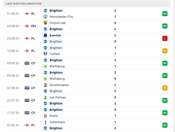 - Phong độ Brighton