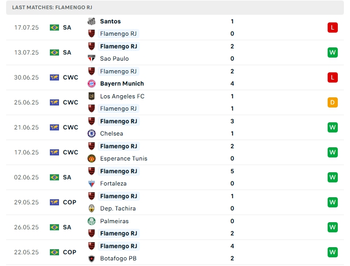 Flamengo sau 13 trận đấu, hàng công của đội bóng này mang về 26 bàn thắng cùng hàng thủ chắc chắn khi chỉ nhận 5 bàn thua, 4/5 trận xa nhà gần nhất thì Flamengo đều có bàn thắng vào lưới các đối thủ, dù vậy 4/5 trận đấu đó họ cũng để các đối thủ chọc thủng lưới.