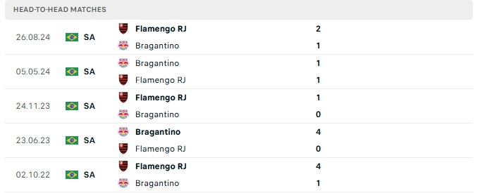 Lịch sử đối đầu của Bragantino vs Flamengo