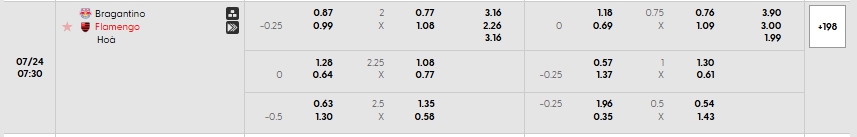 Nhà cái Châu Á đang đánh giá khả năng chiến thắng của các vị khách Flamengo là nhỉnh hơn khi đưa ra mức chấp là 0.25 trong trận đấu này, dù vậy sẻ không hề dễ dàng cho Flamengo hướng đến chiến thắng khi phong độ của họ xa nhà thời gian qua là không tốt, ngược lại Bragantino đang chơi tốt và có ưu thế sân nhà, hơn nữa Bragantino luôn gây nhiều khó khăn cho Flamengo trong những lần chạm mặt, lựa chọn Bragantino cho kèo Châu Á.
