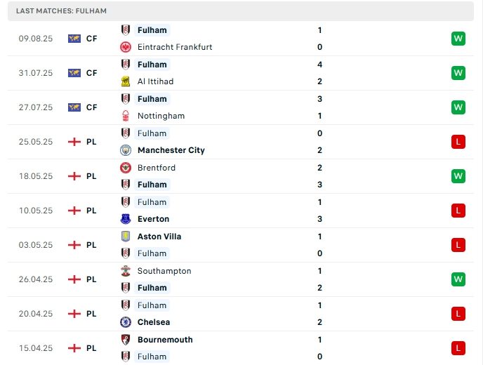 - Phong độ Fulham