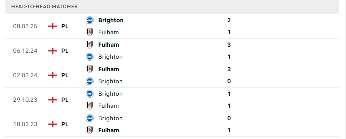 Lịch sử đối đầu của Brighton vs Fulham