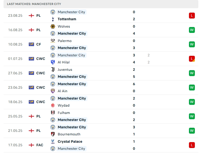 Bên kia sân, Man City chứng minh sức mạnh của mình ở ngày ra quân khi đánh bại Wolves 4 bàn, nhưng ngay sau đó trước một Tottenham đầy khó chịu thì The Citizens đã gây thất vọng khi để thua 0-2, 3 điểm có được cùng với vị trí thứ 6 trên BXH, đoàn quân của HLV Pep đang rất muốn tìm kiếm chiến thắng trong trận đấu sắp tới, phong độ thời gian qua của Man City là khá tốt, đặc biệt là khi xa nhà, Man City thắng đến 4 trận liên tiếp gần nhất.