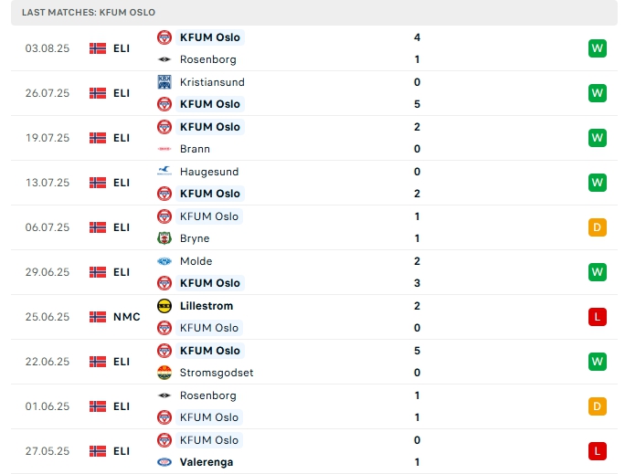 Bên kia sân, KFUM Oslo ở vòng đấu gần nhất họ có chiến thắng ấn tượng trước Rosenborg, đây là trận bất bại thứ 6 liên tiếp với 5 chiến thắng cùng 1 hòa, sau 16 trận đấu, KFUM Oslo mang về 7 chiến thắng, 3 hòa và 6 thất bại có được 24 điểm và đang xếp vị trí thứ 8 trên BXH, phong độ thời gian qua của KFUM Oslo là tốt, trên sân khách họ cũng toàn thắng ở 3 trận gần nhất.