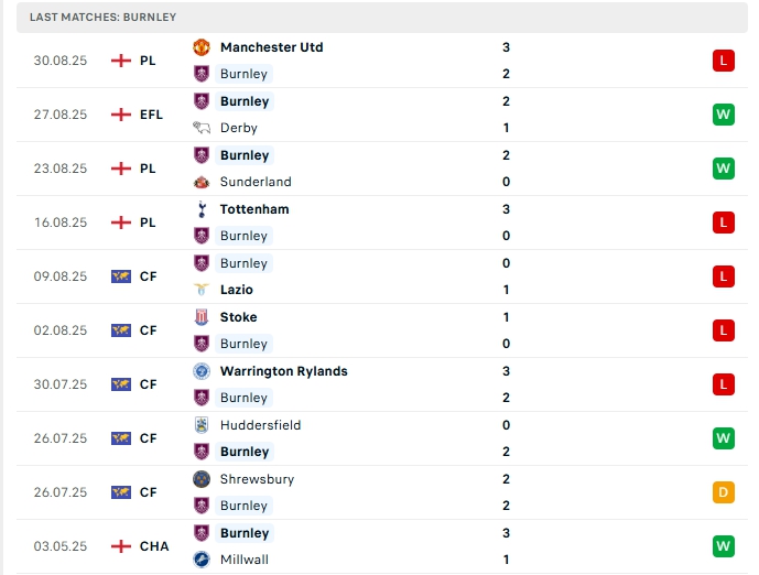 Burnley ở 3 vòng đấu đầu tiên, họ đang gây thất vọng khi nhận về 2 thất bại cùng 1 trận thắng, họ có được 3 điểm và đang xếp vị trí 14 trên BXH, ở trận ra quân Burnley nhận thất bại 0-3 trước Tottenham, sau đó là sự trở lai với chiến thắng trước Sunderland, trận gần nhất họ bị Man Utd đánh bại, phong độ thời gian qua của Burnley là không tốt, đội bóng này chỉ thắng 2 ở 7 trận gần nhất, trong đó có 5 thất bại, dù vậy trên sân nhà Burnley chơi tốt với 4 chiến thắng, cùng 1 thất bại sau 5 trận.