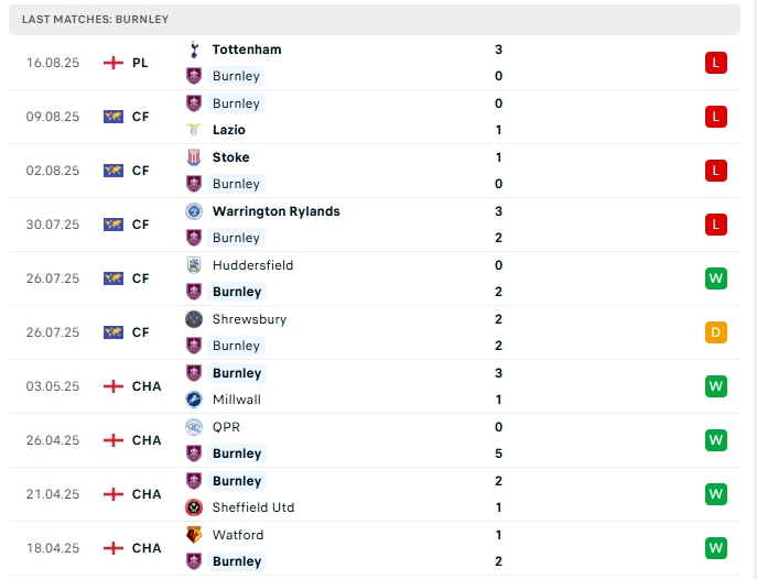 - Phong độ Burnley