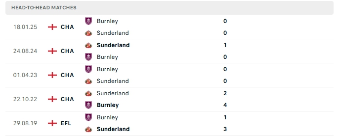Lịch sử đối đầu của Burnley vs Sunderland