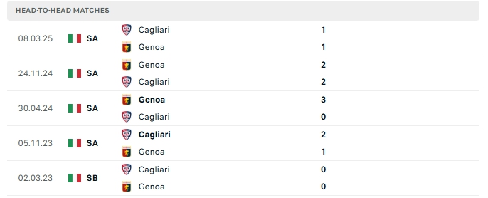 Những màn đụng độ giữa Cagliari và Genoa thường diễn ra với nhiều bàn thắng, 3/5 lần gặp nhau gần nhất của hai đội khép lại trên 3 bàn, dù vậy khi đón tiếp Genoa trên sân của Cagliari khép lại không quá 2 bàn, hàng công hai đội thi đấu không quá tốt thời gian qua thì trận đấu tới nhiều khả năng sẻ khó lòng vượt mốc 2 bàn.