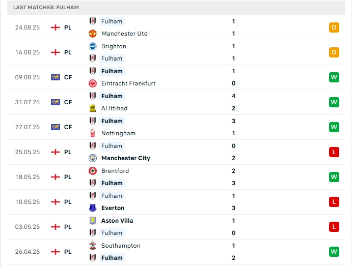 Bên kia sân, Fulham sau 2 lượt trận họ có 2 trận hòa, ở trận ra quân họ có kết quả hòa trước Brighton, sau đó tiếp tục có kết quả hòa 1-1 trước Manchester Utd, 2 điểm có được và vị trí thứ 13 trên BXH, phong độ thời gian qua của Fulham là khá tốt, họ bất bại ở 5 trận gần nhất với 3 chiến thắng và 2 hòa, dù vậy hành quân đến sân của Chelsea sẻ là thử thách lớn với Fulham ở vòng đấu tới.