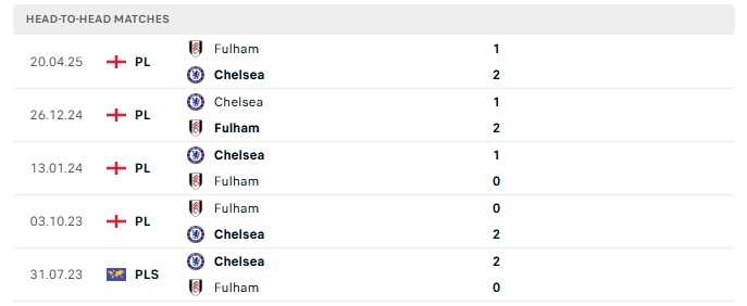 Những màn đụng độ giữa Chelsea và Fulham thường diễn ra với sự chặt chẻ và ít bàn thắng được tạo ra, 3/5 lần gặp nhau gần nhất của hai đội và cả 5 trận đón tiếp Fulham trên sân của Chelsea khép lại không quá 2 bàn.