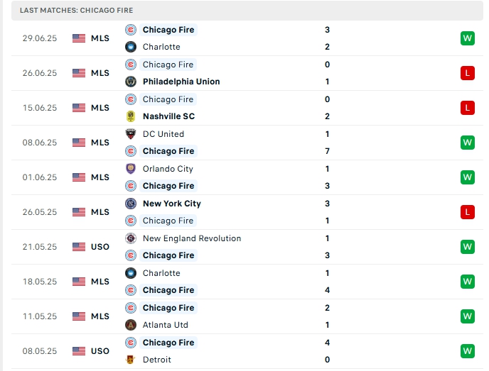 Phong độ gần đây Cincinnati vs Chicago Fire