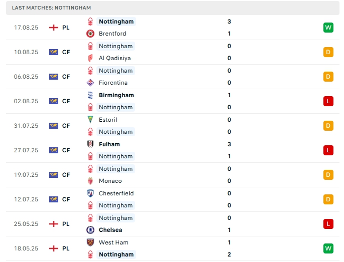 - Phong độ Nottingham Forest