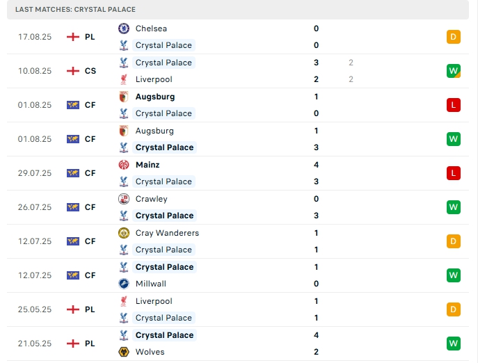 - Phong độ Crystal Palace