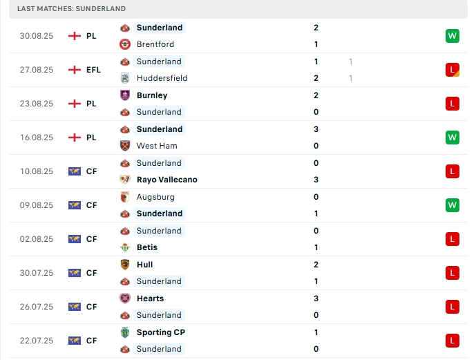 - Phong độ Sunderland