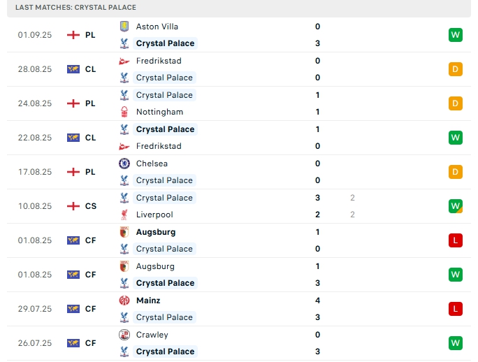 - Phong độ Crystal Palace