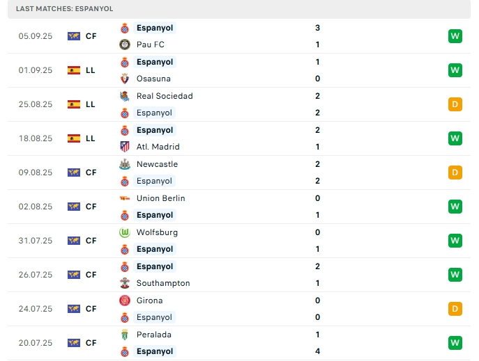 Phong độ gần đây Espanyol vs Mallorca
