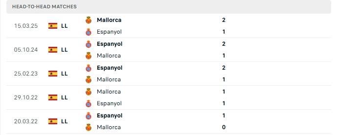 Lịch sử đối đầu của Espanyol vs Mallorca