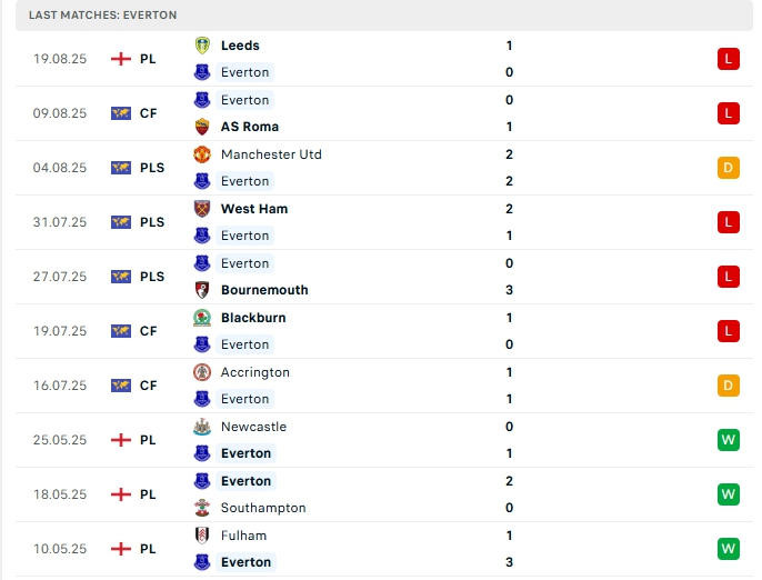 Everton ở trận ra quân họ nhận thất bại 0-1 trước Leeds, đây là trận không thắng thứ 7 liên tiếp của họ, trong đó có 5 thất bại và 2 hòa, phong độ thời gian qua của Everton là không tốt, đặc biệt trên sân nhà của mình Everton cũng đang chơi tệ khi chỉ thắng 1, hòa 1 và thua 3 ở 5 trận vừa qua.