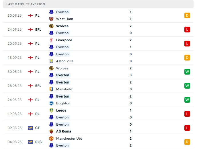 Everton dù có khởi đầu khá tốt với 2 chiến thắng ở 3 vòng đầu tiên, nhưng sau 3 vòng tiếp theo họ đang chơi tệ với 2 hòa cùng 1 thất bại, 8 điểm sau 6 trận đấu, đội chủ sân Hill Dickinson Stadium đang xếp ở vị trí thứ 9 trên BXH, phong độ gần đây của Everton không tốt, trận trước West Ham ở vòng gần nhất, nối dài chuỗi 4 trận liên tiếp không biết đến mùi chiến thắng, dù vậy trên sân nhà Everton đang chơi khá tốt với 2 chiến thắng, 2 hòa ở 4 trận vừa qua.