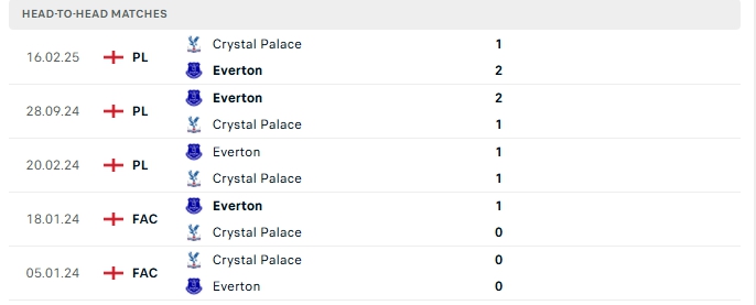 Lịch sử đối đầu của Everton vs Crystal Palace