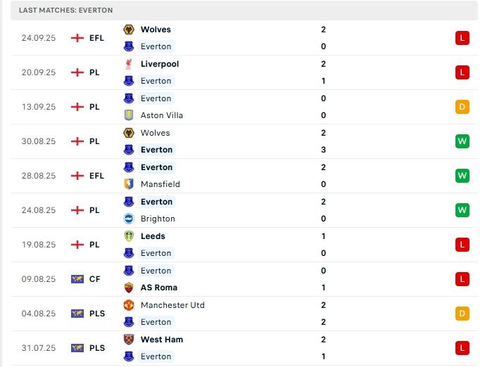 Everton đang có khởi đầu khá ấn tượng ở màu giải năm nay, sau 5 trận đấu họ mang về 2 chiến thắng, 1 hòa và nhận 2 thất bại, có được 7 điểm và đang xếp vị trí thứ 10 trên BXH, ở ngày ra quân dù thất bại trước Leeds, nhưng sau đó đội bóng vùng Merseyside trở lại với 2 chiến thắng liên tiếp, ở vòng gần nhất Everton nhận thất bại trước Liverpool, phong độ trên sân nhà vừa qua của Everton là khá tốt khi thắng 2 hòa 1 ở 3 trận gần nhất.