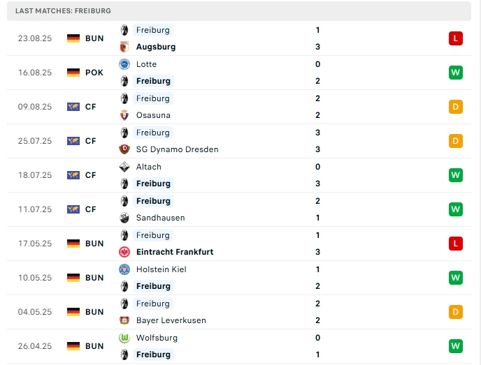 Freiburg ở vòng đấu đầu tiên, họ cũng có 1 bàn thắng cùng hàng thủ nhận 3 bàn thua trong màn đụng độ Augsburg, hàng công chơi không quá tốt, điểm yếu đang đến từ hàng thủ, Freiburg cần nhanh chóng khắc phục nếu không muốn nhận thêm thất bại.