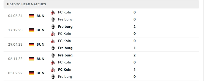Những màn đụng độ giữa FC Koln và Freiburg thường diễn ra chặt chẻ với ít bàn thắng được tạo ra, cụ thể ở cả 5 lần gặp nhau gần nhất và 3/5 lần đón tiếp Freiburg trên sân của FC Koln khép lại không quá  2 bàn thắng.