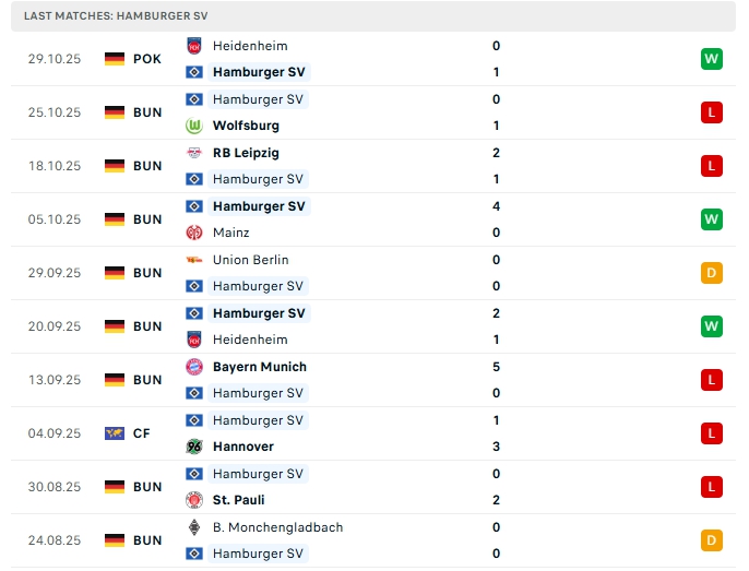 Hamburger sau 8 vòng đấu họ mang về 7 bàn thắng cùng hàng thủ nhận 11 bàn thua, Hamburger thường nhập cuộc với sự chắc chắn, dù vậy khi xa nhà ở 5 trận gần nhất hàng thủ của họ để thủng lưới đến 7 lần.