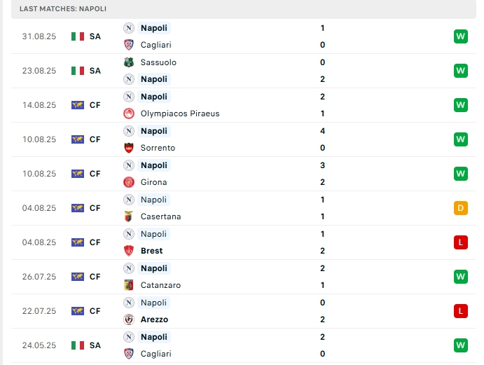 Napoli sau 2 trận đấu này, đội bóng này mang về 3 bàn thắng cùng hàng thủ chưa nhận bàn thua nào, 3/5 trận vừa qua của Napoli khép lại từ 3 bàn trở lên, khi thi đấu xa nhà Napoli thường chơi chắc chắn, ở 5 trận vừa qua khép lại không quá 2 bàn.
