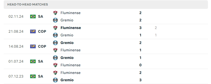 Những màn đụng độ giữa Fluminense và Gremio thường diễn ra hấp dẫn với nhiều bàn thắng được tạo ra, 4/5 lần gặp nhau gần nhất của hai đôi và 3/5 lần đón tiếp Gremio trên sân của Fluminense đều vượt mốc 3 bàn.