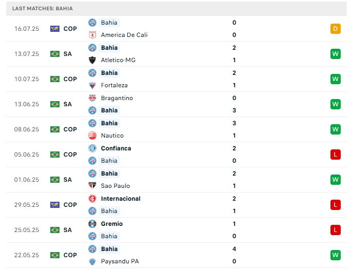 Bahia sau 13 trận đấu hàng công của đội bóng này mang về 16 bàn thắng cùng hàng thủ khá chắc chắn khi chỉ nhận 12 bàn thua, 3/5 trận xa nhà vừa qua khép lại không quá 2 bàn thắng, việc hàng thủ đang chơi chắc chắn cùng hàng công thể hiện được khả năng ghi bàn giúp Bahia đang có được thành tích khá tốt.