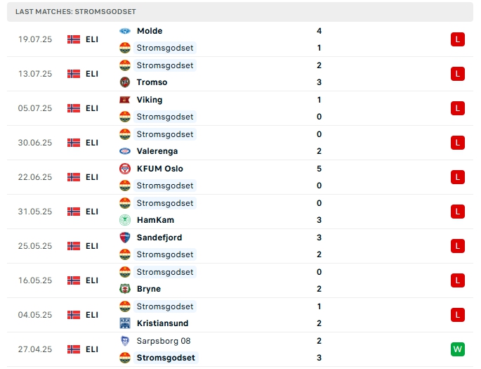 Stromsgodset sau 14 trận đấu họ mang về 17 bàn thắng cùng với hàng thủ nhận 33 bàn thua, việc hàng thủ đang chơi tệ cũng khiến họ gặp nhiều khó khăn, họ cần nhanh chóng cải thiện hàng thủ nếu không muốn bị các đối thủ dễ dàng khai thác.