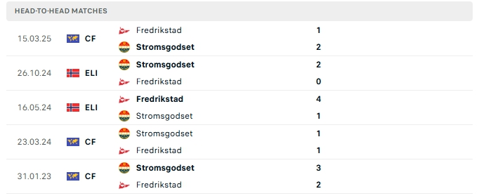 Lịch sử đối đầu của Fredrikstad vs Stromsgodset