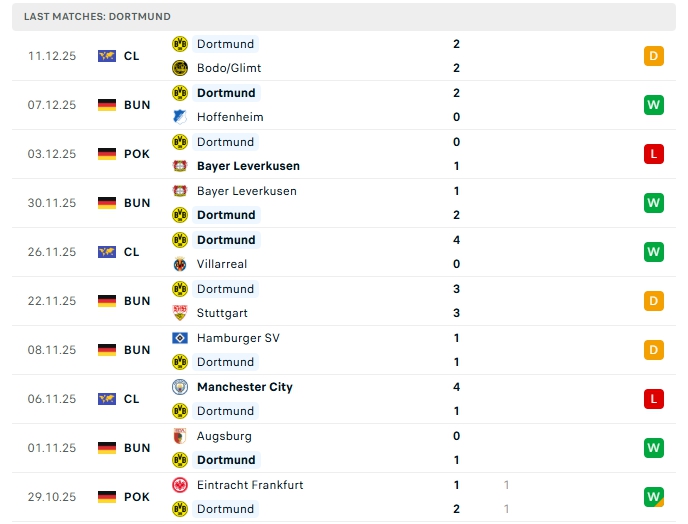 Dortmund sau 13 trận đấu , hàng công chơi tốt khi mang về 23 bàn thắng, cùng hàng thủ nhận 11 bàn thua, hàng công đang chơi tốt, khi thi đấu xa nhà ở 3/5 trận gần nhất chạm mốc 3 bàn, hàng công đang chơi tốt giúp Dortmund được đánh giá cao.