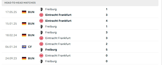 Lịch sử đối đầu của Freiburg vs Frankfurt